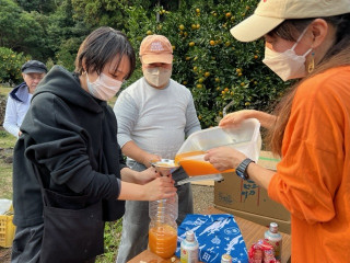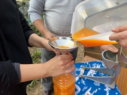 まだみかん収穫時期ではないのですが、早い木はすっかりたわわなので、もいでジュースにしちゃいます!