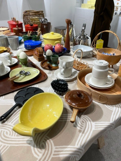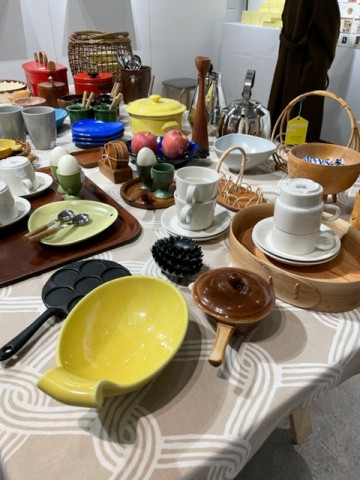 北欧雑貨のPOP-UP SHOP ほぼ日のTOBICHIでは現在 「北欧365旅日記」の連載をしてくださっていたおさだゆかりさんのイベントを開催中です。 初日も盛況だったので、2日めの今日、ゆっくりと買い物に行ってみました。 まだまだあるある、北欧のヴィンテージ雑貨たちが…! 搬入しながら「ここに住みたい」と言い出すスタッフもいたほどで、とても楽しいお買い物ができますよ。 カレンダーの表紙のデザインとお揃いの黄色ななめストライプのゲートが皆さんをお出迎えします。 わたしは茶色の花柄のプレートと、鍋敷き、バターナイフを買ってしまいました? SPOONFUL p? TOBICHI TOKYO POP UP-BUTIK 期間2022年11月18日(金)〜2022年11月27日(日)場所TOBICHI時間11:00〜19:00 2022/11/19 13:02 |