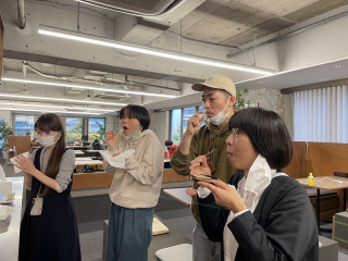 シュトーレンがやってきます ほぼ日本社3階のキッチン近くで、 「シュトーレンありますよ〜」の声とともに突然の試食会が始まりました。 12/14(水)〜25(日)の期間、茶器の販売やおいしいお茶と一緒に、いろんなシュトーレンを楽しめるイベントが 「TOBICHI東京」で開催されるようです。 それぞれのお店の工夫が凝らされた、斬新なシュトーレンの数々にみんなの歓声が止まりません。 スパイスが生かされた、シュトーレンらしいシュトーレンもあれば、一般的なシュトーレンがあまり得意ではなくてもどんどん食べられてしまうような、いちご風味のシュトーレンもあるそうです。 「甘さが強くてお酒も効いたシュトーレンは、食べると体が暖かくなる!」 と発見している人もいました。 (シュトーレン本体の写真も撮ればよかったのですが、ものすごいスピードでなくなってしまったので、撮れませんでした‥‥ぜひ、実物を見にいらしてください) 2022/11/30 17:02 |