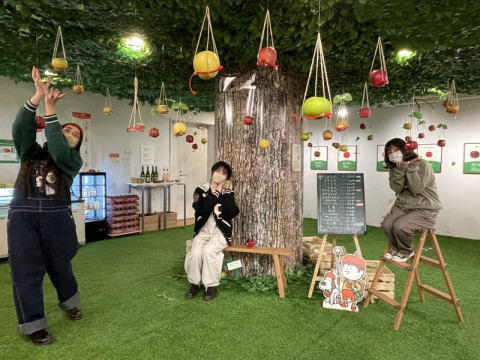 「りんご狩りかもしれない展」の「あかるい写真館」の日 昨日、渋谷パルコ8階「ほぼ日曜日」で開催中の 「りんご狩りかもしれない展」でお手伝いをしました。 この日は会期中1日限定で、写真家の池田晶紀さんが写真を撮ってくれる、 「あかるい写真館」開催日でした。 大盛況でした。 撮影スペースでは、池田さんのたのしい声かけに、写真を撮られる方も、周囲のみなさんも、ほんとうに笑顔が絶えませんでした。 りんご狩り自体も、老若男女問わずたくさんの方がたのしんでくださっていました。 甘いりんごもすっぱいりんごも、それぞれ人気。 組み合わせを考えて狩っている方もおられて、私はりんごの無限の可能性を感じました。 2022/12/05 16:42 |