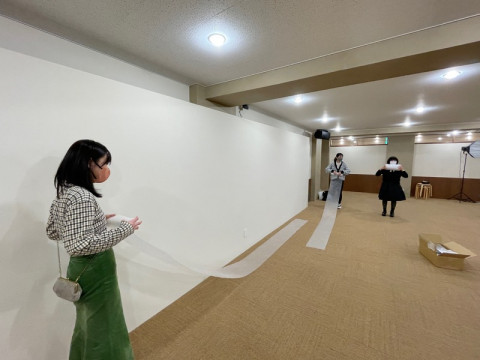 ぐるぐるとみんなで巻いているのは、梱包材です。