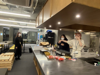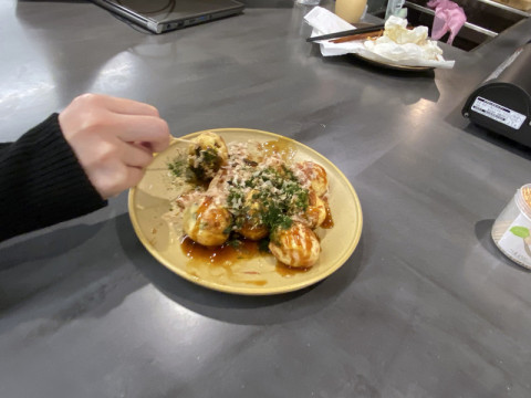 会社でたこ焼きを焼いている。 今日は静かな会社‥‥だと思っていたら、いきなりキッチンで 「わー!」「やろうやろう!」 「これどう?」「あ、違う!」みたいなにぎやかな何かがはじまりました。 なにかと思ったら‥‥たこ焼きを焼いている。 けっこう大きなたこ焼き器は、ちょうが家から持ってきたテフロン製のものらしいです。 社内のレクリエーション用らしいですが、会社ではなかなか見ない、不思議な光景が広がっています。 みんなの働くいつもの3Fにソースの甘い香りが漂っています。 「素たこ焼きですが〜」 と言ってるものをひとつもらいました‥‥あ、おいしい。 中身がとろっとしています。 こういう急なおやつ、ちょっと嬉しい。 2023/03/27 19:02 |