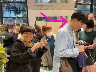 JAGDA新人賞受賞! ウェブに先がけて、たのしみ展でお披露目する、 「ほぼ日サイズ」というお店があります。 サイズをテーマにしたお店で、とっっっっっても大きいバッグ、どでかいバッグを作りました。 デザインを引き受けてくださったのはアートディレクターの石塚俊さん。 ほぼ日では初登場ですが、とてもすてきな方なのです。 どこかにすてきな人はいないかと色々考えていたら‥‥出会いは、20年以上前。 そんなご縁です。 大人になってからこうやってお仕事をするって、いいね! そんなこともあって、チームメンバー しかも。 先日JAGDA新人賞を受賞されたのです! おめでとうございます! (そういえば、去年タオルをやってくださった、 西川友美さんも、受賞されていました) いま、その受賞者の展覧会が銀座でやっているので、おじゃましてきました。 過去のお仕事のいろいろが展示されていました。 かっこいいなぁ! 線がいつもおもしろくて、すっかりファンになってしまいました。 他の受賞者の方々もすてきでした。 よろしければ、足をお運びください。 そして、石塚さんと一緒に作った、どでかいバッグを見に、たのしみ展へ来てくださいー。 最後の写真は、サンプルを持って歩いている石塚さんと、お仲間の浅見さんをほぼ日オフィスから見つけたときの写真です。 どでかい! これがくせになる、おもしろいバッグです。 お店の概要は、 こちらからどうぞー。 2023/04/21 17:44 |