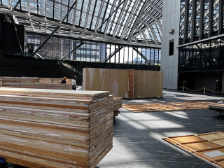 たのしみ展の会場では いよいよ、いよいよです。 生活のたのしみ展が4月29日からはじまります。 今日から会場で設営がはじまって、現場にいる乗組員から写真が送られてきました。 社内で準備をしている我々からすると 「前日の28日まで準備できる!」 という気持ちもあるのですが、会場にはすでに立派な旗が飾られています。 「壁というものは、立ちはじめると一気に立つ」 ということばをもらいました。 この、パタンと倒れた壁が次々と組み立てられていきます。 本番は思っているよりもあっという間にやってきそうです。 気合いを入れていかなくちゃ! 2023/04/25 17:10 |