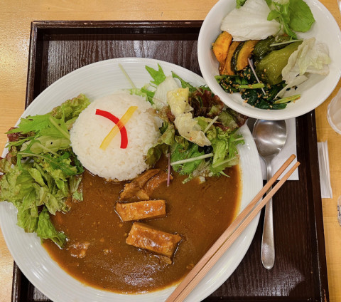 奈良へ。 手帳の製作をしてくださっている奈良の協力メーカーさんに 手帳の生産というと、オートメーション化された工場で作っているのかなあと思いがちですが、多くの方たちがかなりの手間ひまをかけて作ってくださっていることを改めて実感。 ほんとうにありがとうございます。 ※製造過程について、くわしくはこちらをどうぞ。 作っていただいているみなさんの想いも手帳を使うみなさんに届けられるよう、我々も頑張らねばと思ったのでした。 道中、乗り換えをした奈良駅にある 「奈良のうまいものプラザ」でランチを食べました。 奈良のお野菜がバイキング形式で食べられておいしい! 写真は湯が食べたヤマトポークのカレーランチ。 私は元々奈良が大好きなのですが、もうまた行きたい気持ちになっています。 2023/05/31 16:00 |