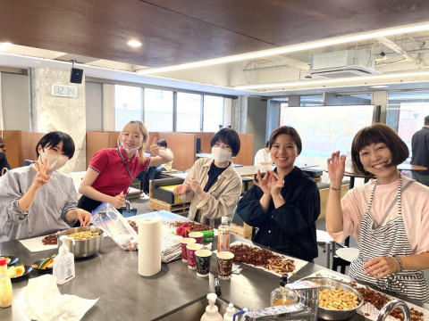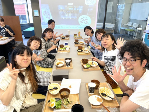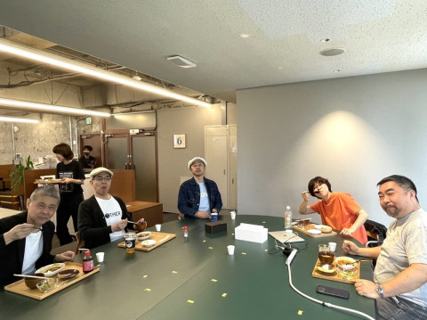 みんなでごはん。 おめでとうメールよみあげラジオがたのしく流れている3Fです。 キッチンにひとりまたひとりとお手伝いをするひとが増え、 「カレーの恩返し」をたっぷり入れたカレーや具だくさん豚汁、ピーナッツバターを味わうガドガドサラダなどおいしいものがどんどんできあがってきました。 お昼を過ぎた頃に隊長の 「ごはん、食べられまーす!」 と呼びかけると、みんながいっせいに集まってきます。 お盆にのせて、取っていくスタイルはまさに給食! 「給食みたいで、なつかしい! 」 「みんなで食べられるっていいね」 「噂に聞いていた給食、こんな感じだったんですか?」 そんなたのしい会話が飛び交いながら、みんなでおいしくいただきまーす。 いい笑顔だなぁ。 2023/06/06 14:27 |