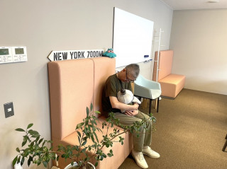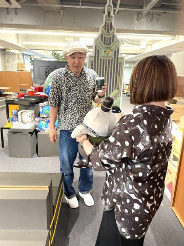 だぶちゃん、あらわる。 なんか、すごい存在感を放っている方々が視界に入ってきました。 あれは‥‥ついさきほど、通勤中に読んでいただぶちゃんと、岸田奈美さんでは?! 奈美さんのおもしろフットワークは、 LOVE相談でさんざん感じていたので、遠からずどこかでお目にかかれると思ってましたがまさか、こんな早く会えるなんて! うれしい。 そして、だぶちゃん、なんて愛らしいんだろう。 社内の各所で、だぶちゃんと遭遇した人がみんな、そのかわいい瞳と声にメロメロしていってます。 そして最後には こんなに、なじみ力があるなんて。 さすが岸田ファミリーです。 2023/06/27 16:15 |