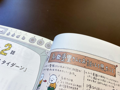 すごいぞ、ヨシタケさん対談集。 ほぼ日もたくさんお世話になっている、絵本作家でイラストレーターの ヨシタケシンスケさんが、このたび対談集を出されたということで、本を送ってくださいました。 その名も 『もりあがれ! タイダーン』。 かこさとしさん、岸本佐知子さん、クリハラタカシさん、坂崎千春さん、柴田元幸さん、junaidaさん、鈴木のりたけさん、ブレイディみかこさん、穂村弘さん、モリナガ・ヨウさんといったそうそうたる方々とヨシタケシンスケさんとの対談集です (糸井重里も登場しています)。 で‥‥この本が、すごいんです。 ヨシタケさんは本当に惜しみない人で、どんな企画でも、どうだったら読む人が嬉しいだろう?みたいなことを徹底的にかたちにされる方ですが、この本も、ヨシタケさんらしいクスッと嬉しい仕掛けがもりだくさんなのです。 「タイダーン」という一風変わったタイトルからもただの対談集とはひとあじもふた味も違う気配が伝わると思いますが、表紙をめくったところから、タイダーンロケットの図解がありますし、赤い見返しにはオープニングソングがあり、キラーンとしたページあり、本を貫く物語あり、各対談の初掲載時にはなかった描きおろしマンガがあり‥‥。 対談を面白く読ませるための参考写真も、たっぷり収録。 ヨシタケさん、編集さん、デザイナーさんたちの本作りチームが 「こういうの嬉しいよね!」をものすごーーーく思いっきり詰め込んだ感じがみちみちています。 いやはや、ヨシタケさんの仕事の仕方はいつでも憧れるのですが、今回も本当にかっこいい!です。 ヨシタケさんの絵本ファンのみなさん、おもしろい造本好きのみなさん、この本もいいですよー。 ぜひ、チェックしてみてください。 2023/07/04 16:07 |