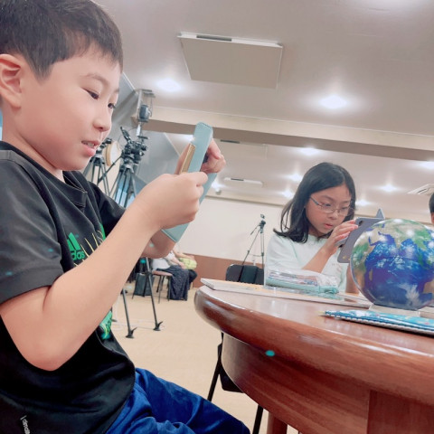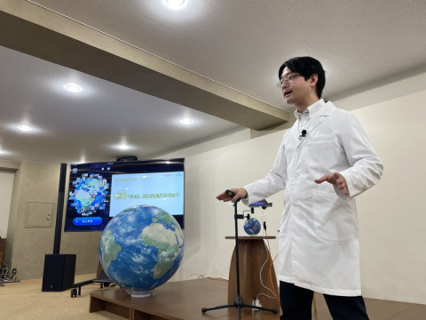 ワークショップ! 今日は本社では、波止場が行われていますが、神田ポートビルのほうでは、アースボールを使って、ほぼ日の學校の教室で 夏休みの自由研究ワークショップを開催中です! ※応募は締め切っています。 小学生のお友だちがたくさん来て、今回の先生である飯嶋先生のいざないで、アースボールを触りながら遊んでいます。 「来年のオリンピックをやる国ってどこか知ってるー?」 「何語を話すのかな?」 「お金は何を使うの?」 アースボールを見ながら、知った情報を答えたり、お友だちに教えてあげたりして。 ここで、自由研究の“たね”を持って帰ってねー。 みんなが真剣に見ている様子を、横の部屋でモニター越しに親御さんが見守ります。 サウナを予約して、リフレッシュしに行った親御さんもいらっしゃいました。 それぞれの夏休みが行われていますねー。 暑いぜ、夏いぜ! 2023/08/04 14:42 |