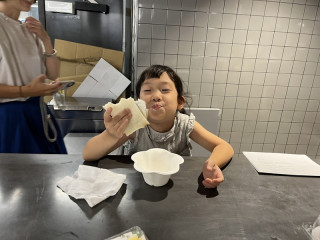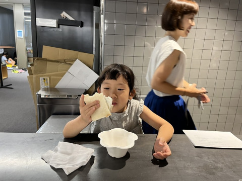 の娘さんが来てくれたので一足先に、フルーツサンドの味見をしてもらいました。