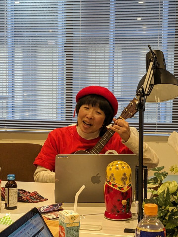 美味しいものを食べ、ウクレレで即興ソングを弾きながらハイペースで描き続けています。