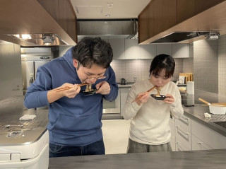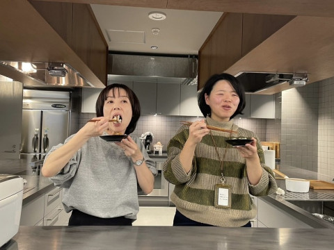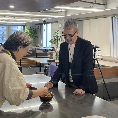 牛ちゃわんの試食会 来週、3月8日19時〜 ほぼ日Liveコマァ〜スで販売予定の冷凍牛丼「牛ちゃわん食堂」 の試食会をしました。 キッチンで斉吉商店の斉藤和枝さんがおいしく作る方法を丁寧に教えてくださりみんなでもぐもぐ。 乗組員も続々と集まってきてほくほくした顔で 「おいしい、おいしい」 と食べていました。 「うまい!!」とコメント。 やわらかいお肉と、程よい食感をのこした甘いたまねぎ、あまからなタレがよくからみあっていて....ほんとうに、ほんとうに、やみつきのおいしさなんです。 Liveコマァ〜スの配信では牛ちゃわん単品のほかに、追加で「金のさんま」 「斉吉海鮮丼(甘海老)」 「海老とマッシュルームのグラタン」 が入ったセットや生活のたのしみ展で好評だった 「よっちゃんなんばん」も販売します。 ぜひおたのしみに! 2024/03/01 18:00 |