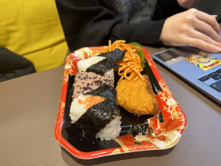 小さいおむすび4つ、スパゲッティー、コロッケらしきものが入っていて、なかなかボリューミーです。
