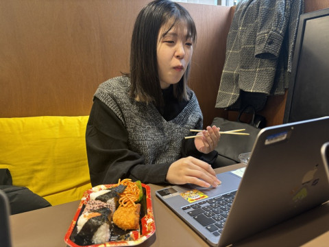 「お腹へった〜」と言いながらパソコンを確認する