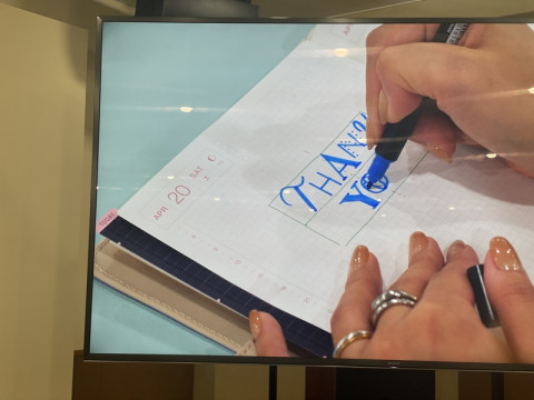 英文字を美しく書きたーい! 今日は、レタリングアーティストのICHIKAさんをお招きして 「美しい英文字の書き方」 について取材をさせてもらいました。 けれど、これを独り占めするのはもったいない! ! ので、大きなモニターに手元を映し、取材をさせてもらいながら、 「みんなでレクチャーを受ける会」 を決行することに! 手元で真似しながら書いてみると、あら不思議、素敵な文字が書けちゃうんです! webで見れるコンテンツにする予定なので、みなさんもぜひ試してみてください。 とっても楽しい時間でした〜! ICHIKAさん、ありがとうございましたー! 2024/03/21 17:24 |