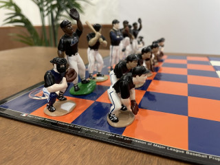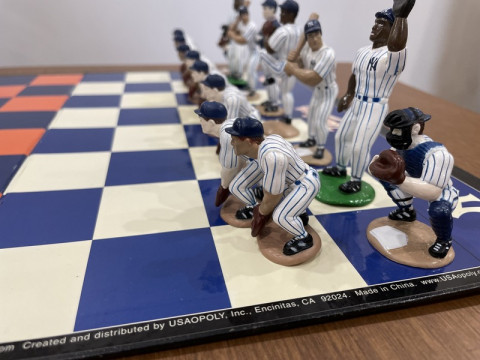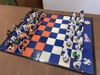 めずらしいもの 野球のユニフォームを着たフィギュアがいっぱいならんでいます。 キャッチャーもいればバッターもいて、監督もいます。 反対側にも並んでいます。 これはなんでしょうか? なんと、ニューヨークヤンキースとニューヨークメッツのチェスでした! ほぼ日の學校の収録で、スポーツジャーナリストの生島淳さんに来ていただき、メジャーリーグの魅力を初心者向けに教えてもらいました。 このチェスは、生島さんの私物。 なかなかめずらしいチェスですよね。 メジャーリーグって深くておもしろい世界だということがわかりました。 今日から沼にはまってしまいそうです。 2024/03/28 18:33 |