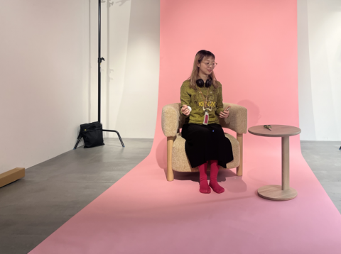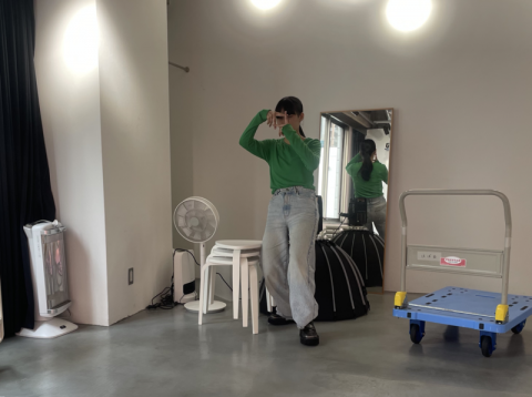 指を窓にしてのぞくポーズはデッサンで構図を決めるときにつかうもの。