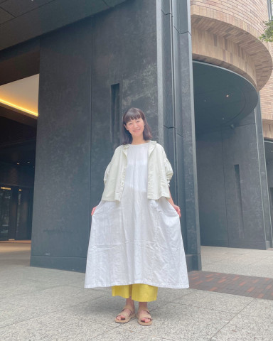 おすすめアパレル1 最近発売したyozoraのアパレル、乗組員数名に着てもらったら、すっごく素敵に着こなしてくれたので、皆さんにも見てもらいたい!と、3連投でご紹介いたします。 どれも新緑に合うさわやかなコーディネートなので、ゴールデンウィークのおでかけや通勤のご参考に〜。 まずはブラウスから。 淡い色合いがきれいにマッチしてビューティーがましまし。 オフィスにも良さそうです。 なんとおしゃれなコーディネート! 真似して高原におでかけしたい。 このネイビーのブラウス、ただのネイビーじゃないんですよ。 なんだか肌映りがいいのです。 ネイビー×デニムって一見難しそうですけど、このようにかわいらしくなるのですね〜。 弊社きってのおしゃれさん ひとつはピンクのパンツと。 水色×ピンクにちょっぴり黒を効かせて甘すぎない雰囲気にまとめてくれました。 あ、あと両脇のポケットに手を入れているのですが、ハンカチやリップを入れたりしても便利です。 黄褐色のワンピースとの組み合わせも、リラックスムードがありつつもすっきりしていて素敵。 いろんなお出かけにいけそうな万能コーデですね! このブラウスは、コーディネートのしやすさだけでなく、おすすめしたい機能が満載で、その一つが袖口に入っているゴム。 みんなの写真のように腕まくりがさっと簡単にできます。 かっこよく決めたいときとか、お料理や手を洗うときなども、さっとできますよ。 ゴムはきつくないけどしっかり留まるようなサイズを検討しました。 他にも、UVカットや接触冷感、撥水機能もついています。 ああ、おすすめしたすぎて長くなってしまいました。 ぜひこれからのお出かけのお供に、たのしくコーディネートしてくださいませ! 2024/05/02 16:13 |