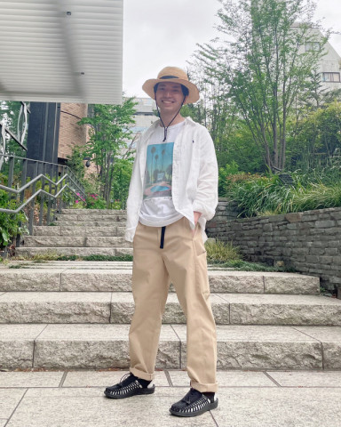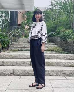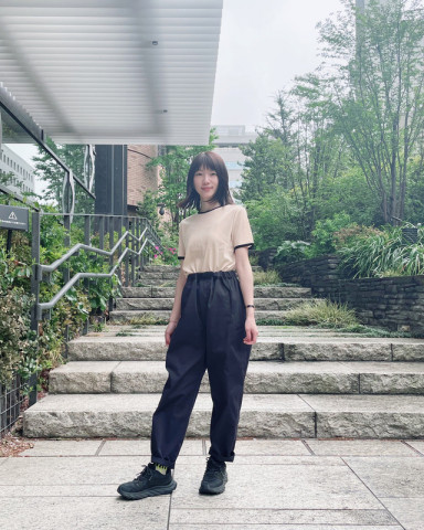 おすすめアパレル3 yozoraのおすすめ、3つめはパンツです。 これがまた、いい写真がたくさん撮れまして、みんな素敵なのです! ほぼ日の乗組員、すごいわ〜と自慢に思いました。 サンド、ミッドナイトの2色で、サイズはユニセックス展開のS〜Lがあります。 身長とサイズを記しましたのでご参考になさってみてくださいね。 わたしは大村とお話する機会がこれまであまりなかったのですが、こういった普段の様子を見れるとがぜん親しみがわきます。 ジャケットと合わせるのが新鮮! ほどよくカジュアルでいい感じです。 ビューティーな人ですが、たまにキャンプも行くといっていたので、この格好で行ってきてyozoraを宣伝してきてほしいです! かのうはモデルさんのような脚長さんでしてSサイズの裾がぴったりですね。 身長158センチの私だと二折くらいするとちょうどよくはけます。 Mサイズもちょうどいいヒロセですが、Lサイズをだぼっと履くのも、気分に合わせていいかもね?とのこと。 ヒロセは気さくな人なので、普段は気が付かないのですが、写真を見ていると、こんなかっこいいおじさんと働けてよかったなと、思います。 最後の あんねんは細身なので、ウエストのベルトをぎゅっとしぼって、ギャザーを寄せているのが、とってもかわいいです。 ここまでの写真を何度も見ては、本当にみんな素敵だわ〜と感激しているわたしですが、 パンツも素敵機能がもりもりなのでくわしくはページを見てくださいね! とくにすごいのがポケットがこれでもか!ってくらいついていることで、サイドにあるスマホが縦にすっぽり入るポケットは秀逸です。 ぜひ、お試しいただけたらと思います。 ではでは〜。 2024/05/02 16:22 |