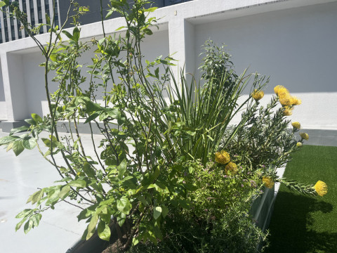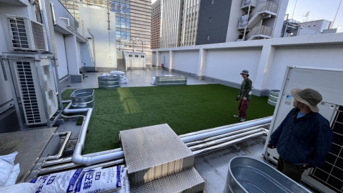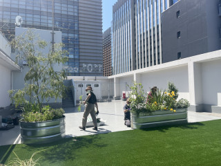 屋上に緑を。 ほぼ日社内の交流を増やしたり、ほぼ日で過ごす時間を快適に、たのしくしていくことを目ざす、 「ほぼ日公園部」というのがあります。 キッチンでカフェバーをやってみたり、味噌づくりワークショップや春は屋形船イベントを開催したり、これまでいろんなことをやってきたのですが、屋上をもっときもちよくしよう! ということで、SOLSOさんに依頼して、屋上公園を作ることに。 1日目に芝を入れ、2日目の今日は、植栽をどんどん運びいれています。 セージやローズマリー、レモンマートルなど、見るだけじゃなく食べることもできるハーブ系の植栽もたくさん植えてもらいました。 シンボルマークのアカシアの木は、搬入の前に花が咲いていたのですが、これから、ブルーベリーやトマト、フェンスにはきゅうりもなるんです。 またカフェバーをひらくとき、屋上の植物をたっぷり使えそう。 夕方もきもちよさそうだな〜! また完成したら、ここにのせたいと思います。 2024/05/10 15:13 |