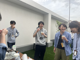 屋上公園、オープン! 屋上がほぼ、完成したので、オープン記念として先日、ほぼ日社内のカフェ&バー 「波止場」を開催しました。 とてもすごしやすい天気で、風もきもちよく、乗組員が仕事のあいまにどんどんやってきてはコーヒーを飲んだり、おしゃべりをしたりと、屋上公園をたのしみました。 そうそう、乗組員がオフィスの何階にいるのかがわかる、 「ほぼココ」という社内サイトあるのですが (誰かに用事があるときとても便利)、ここにもあたらしく 「屋上」が追加されたのです。 屋上でミーティングをしたり、お昼ごはんを食べたり、ひょっとしたら何かコンテンツの場に使われたり、これからどんどん活用していくのがたのしみです。 2024/05/20 18:25 |