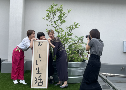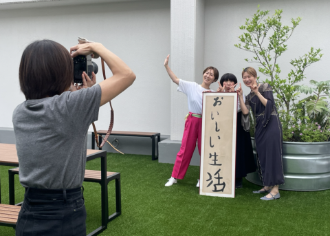 お昼の眠気を覚まそうと、リニューアルした屋上で深呼吸していたら、賑やかな面々がやってきて、すみやかに撮影会がはじまりました。
