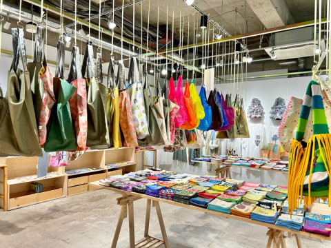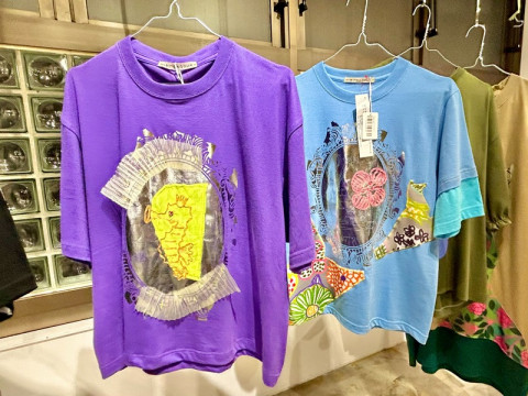 今週末6/23(日)まで! ひびのさんのアトリエで作られる一点もののお洋服やバッグ、ずらりと並んだハンカチ、ビーズアクセサリーなど、お買いものできる展覧会を TOBICHI東京で開催しています。 ひびのさんは、展示がはじまってもずっと製作を続けられていて、明日も新作のリメイクTシャツ(写真3枚め) が届く予定です! パラシュートクロスで作ったふわりと風をうけてふくらむ 「クラゲバッグ」(写真5枚め)や、元気な色がかわいいキッズTシャツ(写真4枚め)もありますよ。 ひびのこづえさんのすてきでたのしい世界をぜひ体験しに遊びにいらしてください。 会期は今週末まで、お見逃しなく‥‥! 2024/06/21 15:56 |