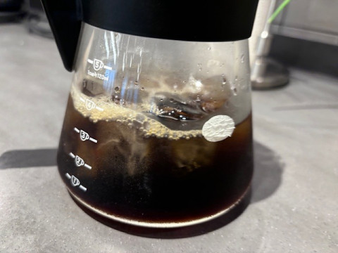 会社でアイスコーヒー? 湿気が多くて、気温も高い‥‥。 ムシムシしちゃって、毎日どうもなー‥‥。 とか思ってたら、会社のキッチンでは、本日、 豆はもちろん、大好きと語る 百塔珈琲さんのもの。 氷たっぷりのところにゆっくりとコーヒーが落ちていって、カランカランと音もして、見るからに涼しそうです。 「最近は毎日アイスでいれてます」 と、たのしそう。 こういう涼のとりかた、いいなあ。 多少時間がかかるといっても、10分程度。 こういう楽しそうな会社での過ごし方、真似していきたいです。 2024/06/26 14:00 |