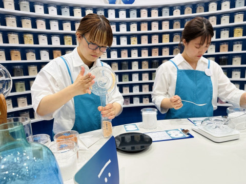 ぐるぐるしゃかしゃか きょう、東京ソラマチ4階に塩のお店がオープンしました。 生活のたのしみ展などでお世話になっているバンブーカットの竹内順平さんが開いた、あたらしいおいしいお店です。 (順平さんは2枚目の写真で青いエプロンをつけている人です) さっそく この塩のお店は、おいしい塩が買えるだけではありません。 自分の好みのブレンドも作れます。 お店の方に導かれつつ、いくつかの質問に答えて味見をしながら、 「自分ブレンド」を私たちはそれぞれ作ってみました。 4人、驚くほどキャラクターがちがう塩が完成。 「やだー、たけうちさんっぽい味!」 「スガノさんってサブカルだと思ってたけど、なんだかんだ王道路線なんですね」 「クラモチちゃんはさすがのストロング好きだなぁ」 「あややは意外とシブいセレクトだ」 などと盛り上がりました。 すごーくおもしろかったです。 ブレンドしていただいた「自分だけの塩」はスペシャルパッケージにして持ち帰れます。 いちど行くと、記録を残してくれるので、 「またあの配合の塩を買いたい」と思うことがあっても安心ですよ。 デートなどで行ってもたのしいし、私はいつか母を連れて行きたい。 東京スカイツリーを見るついでに、この塩の店、のぞいてみてください。 お店の名前は 「ぐるぐるしゃかしゃか」です。 2024/07/11 18:03 |