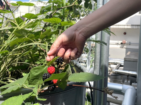 野球で遊ぼう。Tシャツができました! 8月22日に開催されるプロ野球をとことん楽しむイベント 野球で遊ぼう。 (ただいまチケットも発売中です!) 特典としてチケットについてくるTシャツのサンプルができあがりました。 (特典としてさしあげるのは白いTシャツです。 ダークカラーはスタッフが着る予定です) 今回メインのビジュアルを描いてくださったのはキューライスさん。 「野球で遊ぼう。」にちなんだ「悲熊」をたくさん描いてくださいました。 当日、どこに登場するか、楽しみにしてくださいね。 ただいまセ・リーグは1位から4位までのチームの順位が毎日の勝敗でかわる大混戦! おそろいのTシャツを着ておいしいお弁当を食べて、ハラハラドキドキ野球で遊べる1日になると思いますよー。 ところで、写真を撮りに屋上に行ったらきゅうりやブルーベリーができていました。 公園部、がんばってるなぁ。 2024/07/18 17:24 |