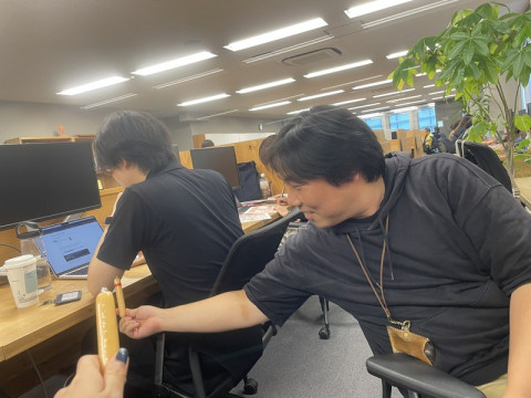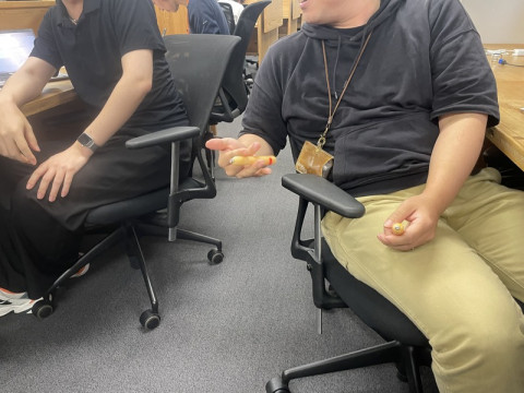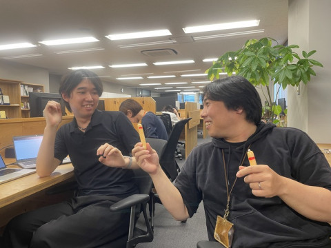 チーかま 隣の席の 私が強奪したことにされてしまいました。 自発的にくれたのに。 多田さんすぎる。 クレヨンしんちゃんのコラボパッケージだったのですが、上のところにしんちゃんの目と眉毛が散りばめられていて、 「これに惹かれて買ってしまった」 とのことでした。 「 と、渡そうとしていたのですが、宮さんがオシャレげな雰囲気を出していたので、急にチーかまを渡すのがはばかられたのか、袖に入れようとして怒られていました。 そのあとチーかま回しをしていました。 多田さんすぎる。 2024/07/22 17:53 |