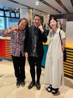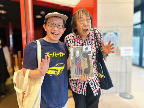 ニコラさんの「点と線」 とっても暑い日なのですが、 カンパニーデラシネラ の舞台「点と線」を観に、横浜の紅葉坂までやってきましたよ〜。 いま、いっしょに本を作っている (何年も何年も作っている) 美術家ニコラ・ビュフさんが、舞台美術を担当しておられるということで、ブックデザイナーの祖父江慎さん、藤井瑶さんとウキウキ出かけました。 なんでも、この舞台はニコラさんが松本清張の「点と線」の大ファンだったことがきっかけで企画されたそうです。 2009年初演なんですって。 フランス語でも「点と線」は出てるのか! 舞台美術はとてもクールでミステリアスで、ザ・ニコラ・ワールドでした。 仕掛けも舞台上の空気もおしゃれで、全てのシーン通してワンカットぽく構成されていて圧倒されました。 全体がバレエみたいなのに、筋がちゃんとわかっておもしろい。 私はみうらじゅんさんに、インタビューを通じて 「清張はすごい、清張はすごい、ほら、清張が見ているぞ! 読んだほうがいい!」 と教えてもらったのに、いまだ一行も清張入門できていなかったことを思い出しました。 舞台のある朗読シーンがあまりにも美しくて 「こここ、これがもしや清張の文なのか?!」 と震えあがるほどでした。 帰りにランドマークタワーの本屋さんに寄りましたが、 「点と線」は見つけきれなかった。 ええい、こうなったら電子で読むぞ。 この夏は松本清張だ! 清張さんが見ているぞ! 会場で、八谷和彦さんに20年ぶりくらいにお会いできて、とてもうれしかったです。 八谷さんとニコラさんはお親しいのです。 (写真の「スーパーカー」のTシャツが八谷さん) ニコラさん、祖父江さん、藤井さんといっしょに作る本は、まだまだいつでもスタートライン。 やったるぞ。 2024/07/28 17:06 |