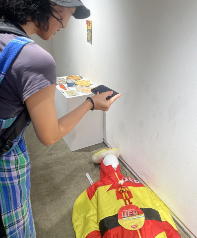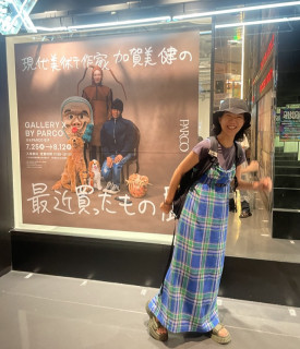最近買ったもの展 先日、最終回を迎えた人気連載 「現代美術作家・加賀美健の最近、買ったもの。」 に登場するものの実物(!)が見られる、 「現代美術作家・加賀美健の最近買ったもの展」に行ってきました。 ヘンで、迫力があって、おもしろかったー。 「無駄っぽいもの」ってすごいなぁとよく思うのですが、あらためて 「無駄のすごみ」を実感しました。 意味がないものや、ヘンテコなものにも居場所がある世界は、居心地がいい気が、私はします。 という思いをこめて、 「金をドブに捨てる」キーホルダーを買いました。 一緒に来てくれた ヤキソバンの寝袋を前にして、 「私が人生で買ったゲームはふたつだけなんだけど、ひとつが『ぷよぷよ』で、もうひとつがヤキソバンのゲームだった」 と、思わぬところでの再会にテンションが上がっていました。 それ以降ゲームにはハマらなかったそうです。 2024/07/31 15:45 |