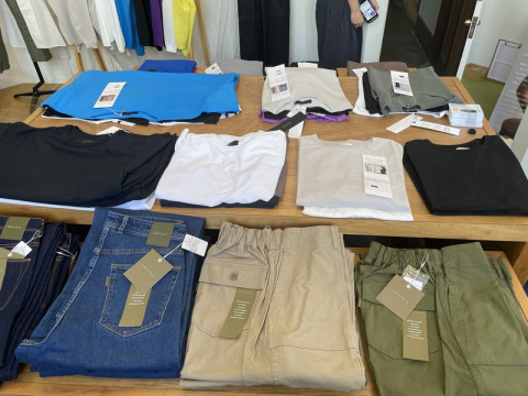 京都でイベントの準備中です! お盆まっただなかですが、明日8月16日から、lelill × 飯島奈美さん SUPER LIFE MARKETのポップアップストアがTOBICHI京都でスタートします。 エプロンやランチョンマット、エコバッグなど飯島さんとlelillと「ほぼ日」が一緒につくったアイテムに加えて、lelillの洋服もたくさんTOBICHIに並びます。 飯島さんのエプロンはワンピースやジレとしてお出かけ用に使ってくださる方も多いので、たとえばどんな風に組み合わせるのか、という具体的なコーディネートもご紹介しています。 袖を通すと、その軽さや機能など、良さを実感してもらえると思いますので、ぜひぜひ、ご試着してみてくださいね。 16日、17日はlelillデザイナーの児玉さんも店頭にいらっしゃいますよ。 写真はTOBICHIのみんなが児玉さんに商品の説明を受けているところ。 lelillの服のおすすめポイントがありすぎて、盛り上がっていました。 とはいえ台風も来ていますので、来ていただける方はどうか安全第一でお越しください。 =============lelill × SUPER LIFE MARKETポップアップストア2024.8.16(金)〜 8.21(水) 11:00 - 18:00 TOBICHI京都============= 2024/08/15 15:05 |