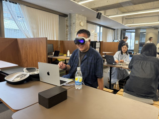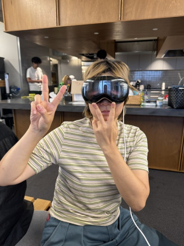 ツッコミ済? じゃない? ちょっとふしぎなたたずまいのひとを視界に入るけれど、周りは誰も気にしていなくて、誰かがツッコミ済なのか? まだなのか? 気になる‥‥。 でも、やっぱり無視はできなくて、戻って写真を撮ってしまいました。 彼の名は ここでも何度が話題にのぼっているApple Vision Proを装着していました。 遊んでいるわけではなく、なにか仕事らしいです。 せっかくなので、わたしもさせてもらいました。 わあ! すすごい! 何が見えたかはお伝えできず、ただ「すごい!」ってことだけですが‥‥。 おつかれさまですっ。 2024/08/28 13:56 |