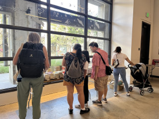 LAポップアップ2日目です ただいまロサンゼルスは9月2日の午後です。 先月までは手帳の新作発表会をおこなっていましたが、9月1日に合わせて、ポップアップストアとして販売をスタート。 きのうに比べて店内はおちついていて、みなさん手帳や文具を眺めながら、どれが自分に合うかじっくり考えている様子。 会場をぐるぐると何周もしながら見て回っている方も多いです。 そして今日も、かわいらしい犬たちが来店しています。 みなさんとてもお行儀よく、飼い主のお買い物につきあっていますよ。 * * * こんな感じで8月31日からの3日間、ほぼ日手帳2025の発売前後のようすを 日英併記のテキスト中継でお届けしてきました。 世界の人たちが使うほぼ日手帳も見られますよ。 2024/09/03 06:50 |