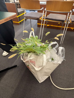 大きな袋に、大量のネコジャラシを入れている藤森さんに出会いました。