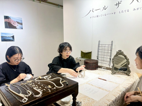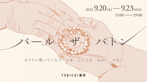リメイクしませんか? TOBICHI東京で、 「パール・ザ・バトン」がはじまりました! パールスペシャリストの山本和佳さんがおうちに眠っているパールのブローチやネックレスをいま使う方にぴったりのデザインにリメイクしてくださいます。 初日の今日も、ひっきりなしにリメイク相談のお客さまがお越しくださっています。 自分では思いつかないコーディネートを教わったり、パールを譲り受けたエピソードをお話ししたり、たのしくあたたかい時間が流れています。 今回は、伊勢志摩のベビーパールのアクセサリーもご用意いただきました。 色や形に個性があって、ころんとかわいいパールたちです。 えらび甲斐もありますよ! 会期は9/23(月)まで。 混雑時は順番にご案内しますので、お時間に余裕をもってお越しいただけますと幸いです。 この週末はTOBICHI東京で、お待ちしています! 2024/09/20 17:23 |