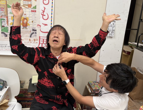 今週も、祖父江さんのもとに。 先日、前橋ブックフェスのための本を集めている面々がブックデザイナーの祖父江慎さんのもとに、お邪魔していました。 そのとき、「どうしよう、来週だと思ってた」 とおっしゃってましたがそれ、わたしたちです! 今日も、祖父江さんに話を伺いにきちゃいました。 サービス精神たっぷりに動画用のマイクをつけるときから笑わせてくださいます。 たくさんの本のなかから、ある方との思い出と一緒につくった本や展覧会のお話を伺ってきたので、たのしみにしててくださいねー。 2024/09/26 18:48 |