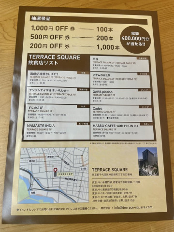 お祭りライバル 最初にあやまります、かってにライバルなどと言ってすみません。 さきほど 「延期になったつなひき大会が開催される11月1日に、ご近所の神田テラススクエアでも、秋祭りがあるみたいだよ」 と、チラシを渡してくれました。 ほんとうだ。 しかも、テラススクエアの人気飲食店も集結して、めちゃくちゃたのしそうだ。 一瞬、 「つなひき大会とご縁日のお客さんがみんなテラススクエアに行ってしまう!!」と焦りましたが、大丈夫。 どっちもたのしめばいいだけのことです。 11月1日は、ご縁日、つなひき大会、秋祭りと盛り沢山な神保町に、ぜひあそびに来てくださいね。 2024/10/15 15:05 |