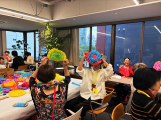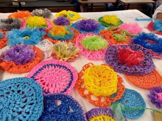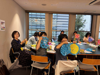 みんなで編んでる 能登の「すずなり食堂」を飾り付ける装飾をみんなで編むひびのこづえさんのワークショップ、気づけばさきほどよりさらに人数も増えて、静かにものすごく盛り上がってます。 着々と編んでいく参加者のみなさん。 かなり複雑そうなのに、どんどんできあがっていて、すごいです。 こんなの編めるんだ!という感じ。 けっこう編みものの猛者たちが集まってくださっている感じがします。 みなさんが編むためのスズランテープを紙の芯に巻き付ける 「まきまき隊」もいます。 これはこれで、単純ながら、なかなか根気のいる作業 (ちょっとやらせてもらいました)。 みんながんばれー! みんなで編んだ飾り、お店のどんな装飾になるんだろう? カラフルで明るくて、思いもこもっていて、なんだか素敵なものになっていきそうな気がします。 完成、たのしみです。 2024/11/01 17:22 |