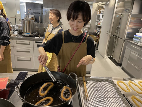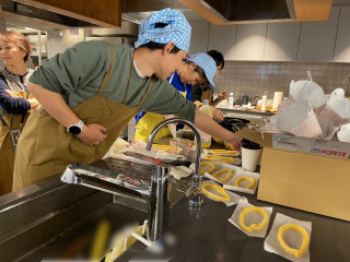 チュロス職人 練習での 「ジェラートとチュロス」担当は、 (本番ではFLOTOのスタッフさんが揚げてくださります!) 生地がなかなか硬く、しぼるのがけっこうむずかしいようです。 苦戦していましたが、だんだんコツをつかみ、最終的にはチュロス職人が爆誕していました。 拍手喝采です。 ちなみにじょうさんはサイエンスマジック部でもあり、 「おいしいカルテット」のレジシステムをつくってくれた人でもあります。 チュロス職人であり、システム職人なのです。 2024/12/04 11:43 |
