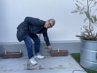 雑草プランターを設置! こんにちは。雑草部です。 少し前に、本社の屋上に雑草を観察するためのプランターを置きました。 最近、雑草の魅力に夢中になっている雑草部ボス・糸井もプランターを設置。 「雑草様繁盛予定地」「雑草様御招待之地」 という2つの竹ラベルも立てて、準備万端。 雑草よ、来い来いと祈るばかりです。 屋上にはローズマリーなどのハーブもいっぱい植えてあり、いろいろな植物で賑わっています。 (3枚目、ハーブの香りで盛り上がるメンバー) 毎日のように「雑草よ、来い」と祈っていますが、2週間経ちましたがまだ来ません。 雑草が生えたら皆さんにご報告させていただきますね〜。 2024/12/16 12:40 |