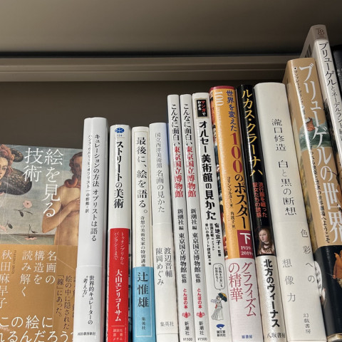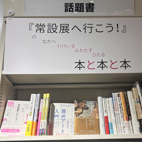 美術書フェアを開催中! 先日の「生活のたのしみ展2025」で 「全国ミュージアムショップ大集合!のお店」 というお店を担当いたしました。 不定期連載「常設展へ行こう!」に登場する美術館・博物館のミュージアムショップに文字どおり大集合!していただいたお店です。 東博のハニワさんと、奈良美智さんのあおもり犬と、フランソワ・ポンポンさんのシロクマと、成田亨さんのウルトラマンと、サルバトール・ダリさんのおヒゲのグッズと、和田ラヂヲさんの描いたモナリザさんが同一の時空間に並ぶお店は、世界広しと言えども当店だけだったはずです。 うれしいことに、大繁盛でした! さて、そんなお店の一角には、会場ご近所のブックファースト新宿店さんが選書してくださった美術書関連コーナーも開設しておりました。 同時に、同店の話題書コーナーでも連動した美術書フェアをやっていたんですが、 「生活のたのしみ展」が終わったいまも、同店ではフェアを継続して展開してくださっています。 『常設展へ行こう!』に出てくる作家や作品等の固有名から導き出した選書で、読みたい本ばっかりで、困りました。 鳥獣戯画の本からは東博さんを思い出し、ロスコやマレーヴィチの本からはDIC川村記念美術館を思い出し、瀧口修造の本からは富山県美術館を思い出し、パウル・クレーの本からはアーティゾン美術館を思い出し、セザンヌやピカソや藤田嗣治の本からはいろんな美術館を思い出し‥‥と、楽しかった取材の記憶もよみがえってきます。 (写真は取材時視点の棚のようすです。 その後、 売れてしまった本もあるかもしれないので その点、ご了承ください) フェアの担当は、ご自身も美術がお好きだという広野陽子さん。 美術館の企画展は本屋さんでいったらフェアの棚で、美術館の常設展は本屋さんでいったら元の棚‥‥というような、美術館になぞらえた書店員さんの仕事論もうかがいながら、ご案内いただきました。おもしろかったなあ。 この美術書フェアは2月14日(金)までやっているそうなので、新宿西口のコクーンタワー地下にあるブックファースト新宿店さんに、ぜひぜひ、足を運んでみてください! 2025/01/29 18:56 |