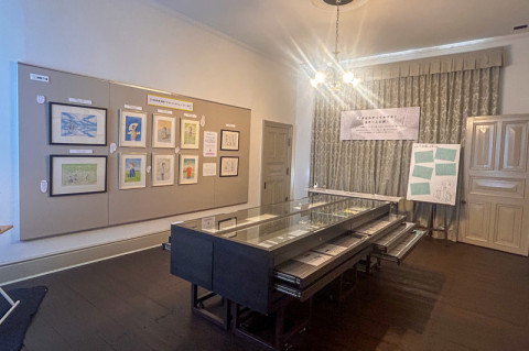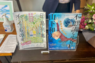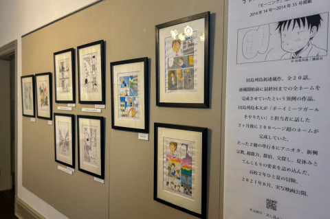 田島列島さん初の原画展! 世田谷区豪徳寺の住宅地の一角、まるで水が海に向かって流れるように、そこだけ時がゆるやかに流れているかのような水色の洋館がたたずんでいます。 明治21年(!)築の、旧尾崎テオドラ邸という建物です。 いま、こちらの2階のギャラリーで田島列島さん初の原画展を開催中‥‥ということで、ついさっき行ってきました。 まず、何度も読んだデビュー作『子供はわかってあげない』表紙原画をまじまじと見ます。 何かもう、吸い込まれそうになりますね。 うまく言葉にできないんだけど、原画というものは、やっぱり、確実に何かがちがうと思う。 ネームも全ページ公開されていましたが、 「これがネーム?」という完成度。 最終コマのTシャツのロゴまで、最初のネームの時点で描き込まれている! 会場内には、光栄なことに、数年前のほぼ日の 田島列島さんインタビューからの言葉も抜粋して展示されていました。 併設のショップ(写真7枚め)も、やさしい光に包まれた、この素敵さです。 今回の展覧会のためにつくったオリジナルのグッズが並んでいました。 アクキーを買う。これはかわいいぞ。 そして最後に、喫茶室で展覧会に因んだゼリーをいただきました。 ただいまモーニング・ツーで連載中の田島さん最新作『みちかとまり』で、みちかが 「湖面に映る満月を飲むシーン」から着想を得たものだそうです。 ほどよく甘くて、みずみずしくて。 じつにおいしかったです。 いやー、いろいろ満たされました。 原画で眼福はもちろんのこと、ショップでのお買いものや喫茶室など、大充実の金曜日の午前中でした。 現在の前期展示は2月12日(水)まで。 2月14日(金)からは後期展示、お次は『水は海に向かって流れる』の原画がお目見えだそうです。また来なければ。 (ネームや表紙原画は 後期も引き続き展示されるそうです) 現地で当日券(1500円)も買えますが、オンラインなら1000円とお得です。 喫茶室の利用についても、オンラインからの予約が優先だそう。 ただ、空きがあれば当日券でも利用できるとのことですよ。 その他、定休日などくわしいことは、 旧尾崎テオドラ邸のHPでご確認を。 2025/01/31 15:33 |
