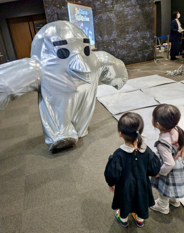 月を探査しただジュよ みなさん、ごぶさたしています。 ほぼ日で見習い乗組員として日々ハッスルしている宇宙の鳥、シジュだジュよ。げんき? 今日シジュは、 コスモプラネタリウム渋谷におじゃまして、みんなと遊んできたんだよ。 『月と地球をめぐる冒険旅行を楽しもう』というイベントで、月に見立てたフィールドで 月面探査ロボットSORA-Qの 1/1スケールモデルを動かすというおもしろい体験をしただジュよ。 このSORA-Qは、月面に着陸し撮影した日本最初のロボットなんだって。 丸いところの直径は約8cmだジュよ。 いくら月が地球より小さいからといって、こりゃ〜小さすぎるだジュよなぁ。 SORA-Qは月面探査ロボットなのでもちろんカメラを搭載しているんだジュ。 4枚目の写真は、遊びに来てくれた小さいお友だちがSORA-Qで激写してくれたシジュだジュ。 こんなんが月にいたらビックリするね。 このロボットが月でどんな活躍をしたのか、コスモプラネタリウム渋谷の村山先生がとってもくわしく教えてくれたよ。 じつはシジュ、6年くらい前に 火星のイベントでここにおじゃましたんだジュよ。 今回は月だから、また次は別の惑星のイベントで遊びに来たいな。 渋谷にこんなにステキなプラネタリウムがあるの、いいよね。 帰りはみんなといっしょに ほぼ日のアースボールでたっぷり遊んでいきました。 村山先生、また来るだジュよ〜。 2025/02/01 19:15 |