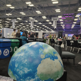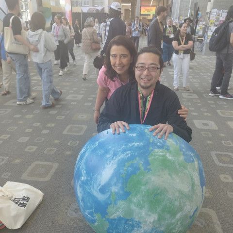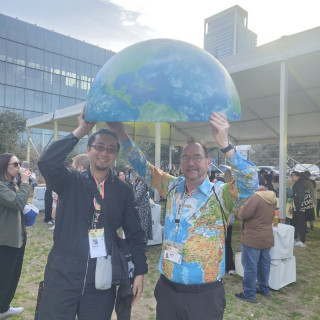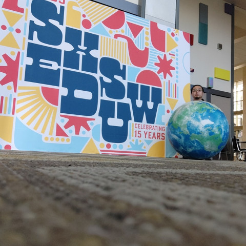 大きなあれと、オースティンで過ごしました すぎもとが書いていたように、今回のBIGアースボール手持ち大作戦は、そもそも昨年3月の「サウス・バイ・サウスウエスト」での展示に、それが届かなかったことへのリベンジです。 ニューヨークの続きとして、その「サウス・バイ・サウスウエスト」のEDUが開催中のテキサス州オースティンにもBIGアースボールを連れてきました! 諸事情で北半球しか持っていないのですが、街なかやイベントを歩くとよく目立ちます。 あ、南半球は送り返しましたのでご安心を。 地図柄Tシャツを着たおじさまとコラボ記念写真したり、昨年アースボールをお渡ししたブラジルの学校関係者の方と再会したりも! セルフィーも撮ってリベンジ成功ということで、この旅報告を終わります。 2025/03/08 07:17 |