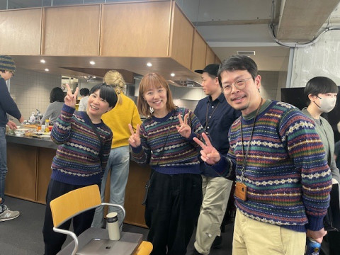 と手に取ったセーターが同じだった3人で記念写真を撮りました。