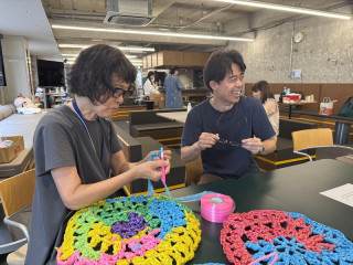 ワークショップやってます。 週末にひびのこづえさんのTOBICHIのワークショップを終え、今日は、石川県にある珠洲の食堂の装飾を作る ワークショップを開催中です。 朝からたくさん集まってくださり、前回ご参加くださった方もいて、隣の方とコミュニケーションをとりながら、ちょっと教えたり、教えてもらったり。 今回、「またやってください!」 と言い出しっぺしてくださった珠洲の木村さんも、駆けつけてくれました! ひびのさんにいろいろと教えてもらいながら、がんばっている木村さん。 参加者が多いので、材料仕込みもがんばらねば! 2025/06/12 11:46 |