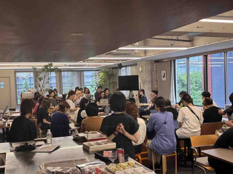 身体がやわらかい。 関わる人がものすごく多い手帳のチーム。 最近は会議室に入りきらないので、3Fのフロアで週1回、大勢での共有ミーティングをしています。 きょうもみんなでわいわいやってるなと思ったら。 ‥‥あれ?なにか不思議な感じが‥‥ (写真2枚め) と、気づけば真面目な会議中、 身体やわらかいなあ。 会議の途中、身体をほぐしたりとかよくやりますけどね。 こんなにできるの、羨ましいです。 (そういえば昔、ほぼ日手帳の 「180度パタンとひらく」にかこつけて、 みんなで開脚を習ってみたこともありました。 パタンと開くやわらかい仕様、ほんとに使い勝手がいいんですよー) 2025/06/25 15:16 |